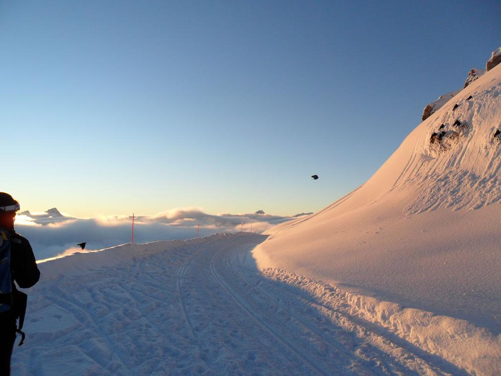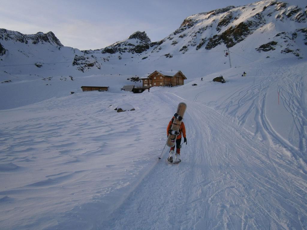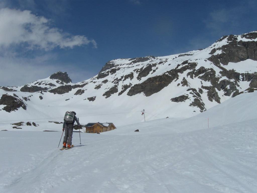 prendere la funivia fino al Gabiet, percorrere la pista (sul bordo e prestando attenzione agli sciatori) fino al palo n.9 della funivia dei Salati. Da qui seguire a ritroso il rientro di sicurezza del fuoripista di Indren (segnalato da palinatura arancione) fino al rifugio. Normalmente il tracciato è battuto da un gatto delle nevi.